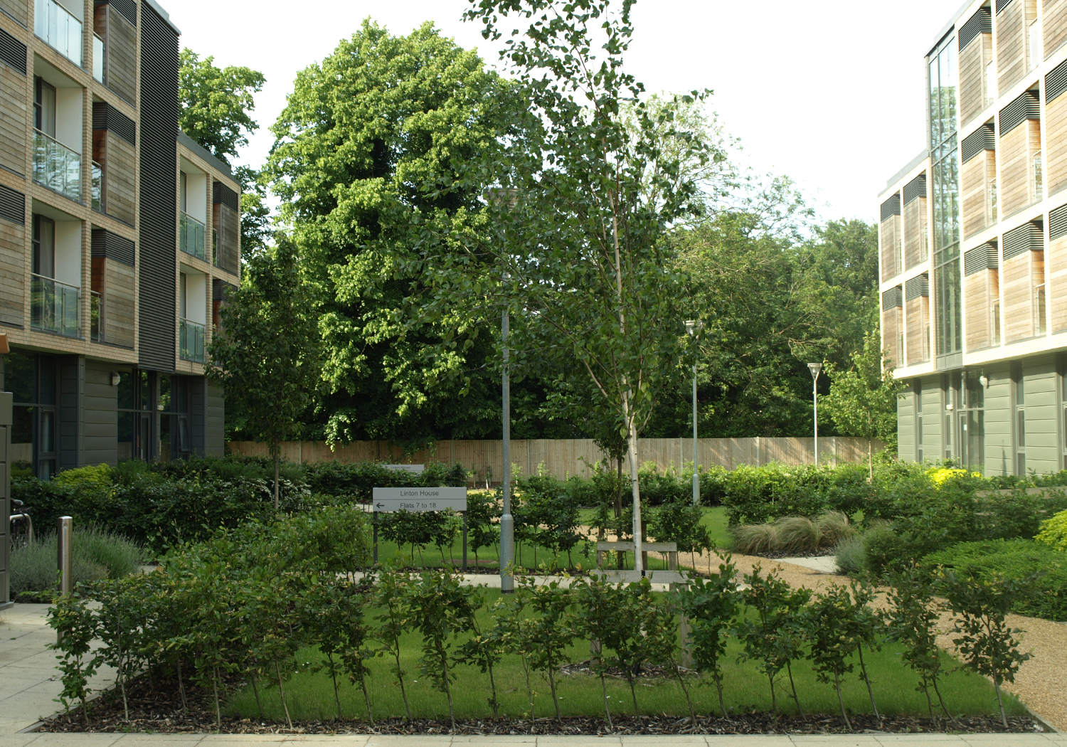 The first phase encompassed the refurbishment of the original buildings, located in a prominent position on a ridgeline, to a mix of educational and office uses. The landscape proposals responded to the extensive mature trees and the original parkland setting. Subsequent phases involved accommodating a series of elegant modern pavilions on a prominent sloping site, replacing a range of unsightly and ad hoc hospital structures. The landscape masterplan delivered a contemporary setting with strong structure planting and an individual character for each of the units.