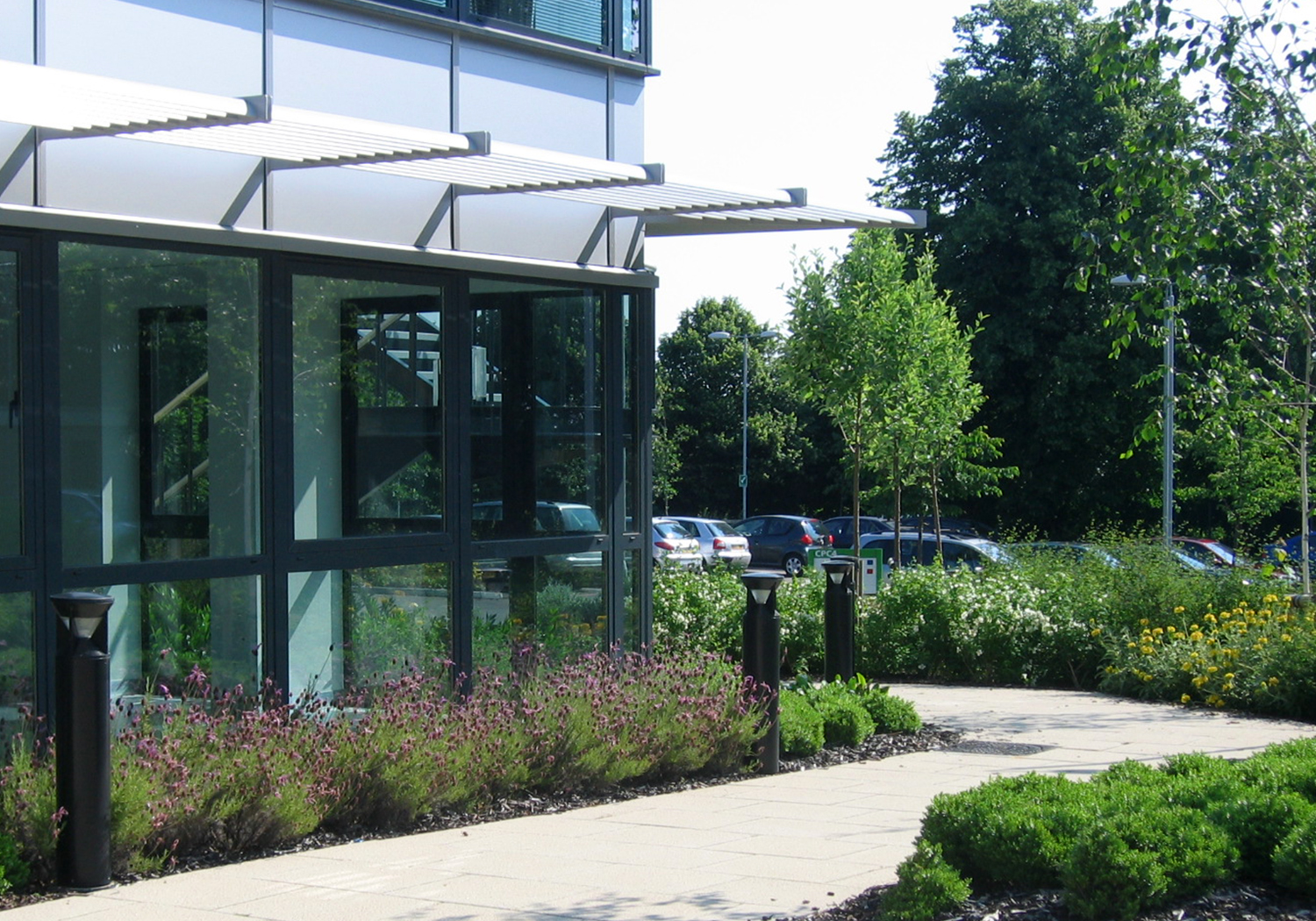 The first phase encompassed the refurbishment of the original buildings, located in a prominent position on a ridgeline, to a mix of educational and office uses. The landscape proposals responded to the extensive mature trees and the original parkland setting. Subsequent phases involved accommodating a series of elegant modern pavilions on a prominent sloping site, replacing a range of unsightly and ad hoc hospital structures. The landscape masterplan delivered a contemporary setting with strong structure planting and an individual character for each of the units.