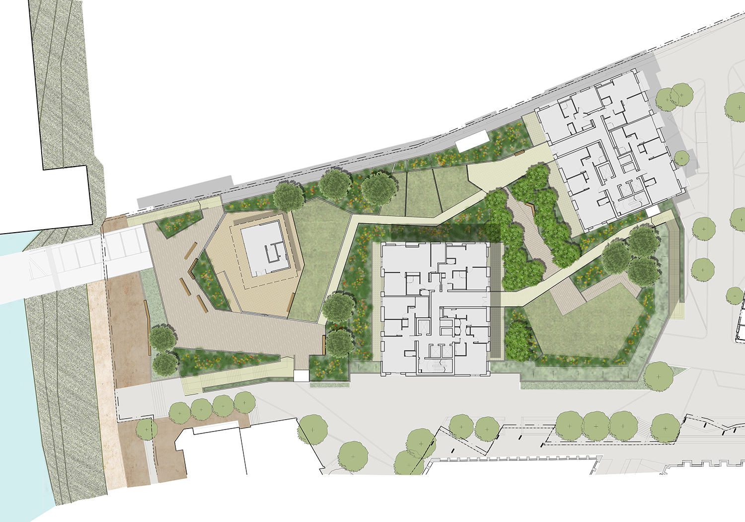 Landscape proposals for new public gardens situated on the podium of a proposed cruise liner terminal and residential development in Greenwich. Project included working in a multi-disciplinary design team to develop proposals to support a detailed planning application, including preparation of a public realm strategy, planting strategy, materials strategy and landscape layout. Design proposals included a viewing terrace and sky bar providing opportunities for visitors to observe the arrival and departure of cruise liners and enclosed garden areas providing amenity and play space for the residents of the development.