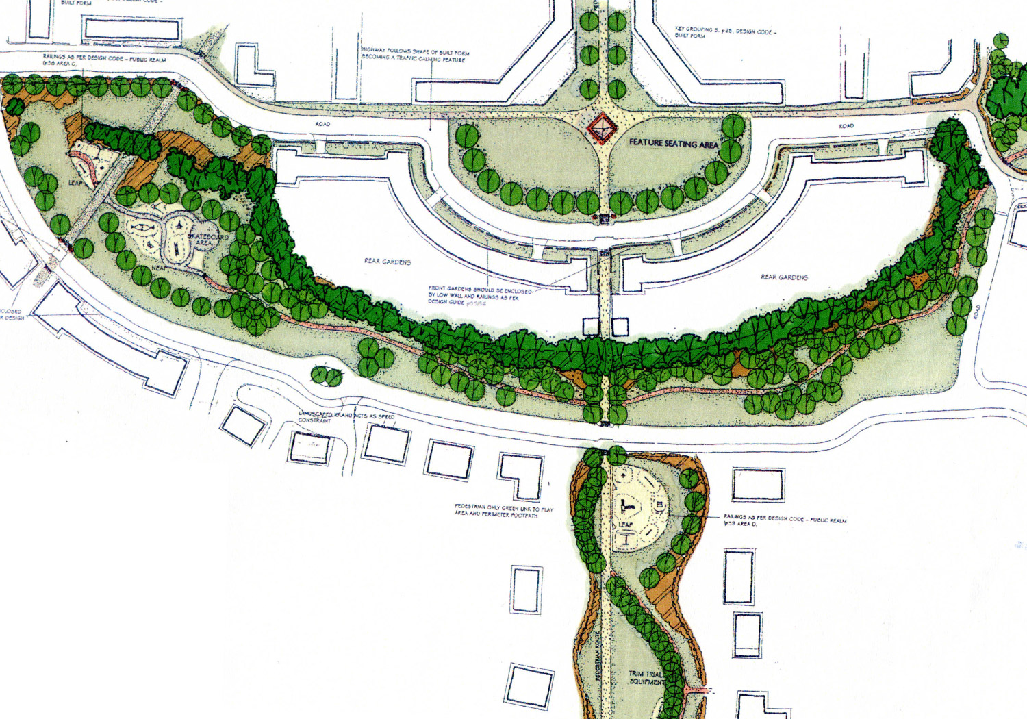 Landscape and environmental appraisal of redundant hospital, including identifying opportunities and constraints for the land and the feasibility of redevelopment for residential use within the setting of listed buildings. The initial landscape visual appraisal was used in preparation of a local authority planning brief for the project and the allocation in the Local Plan. This led to the detailed design of proposals around the listed building, a landscape masterplan for the entire site, input to the Environmental Statement and Input to the Design Guide. Detailed designs were prepared for hard and soft works for parks, play areas, open spaces and planting belts.
