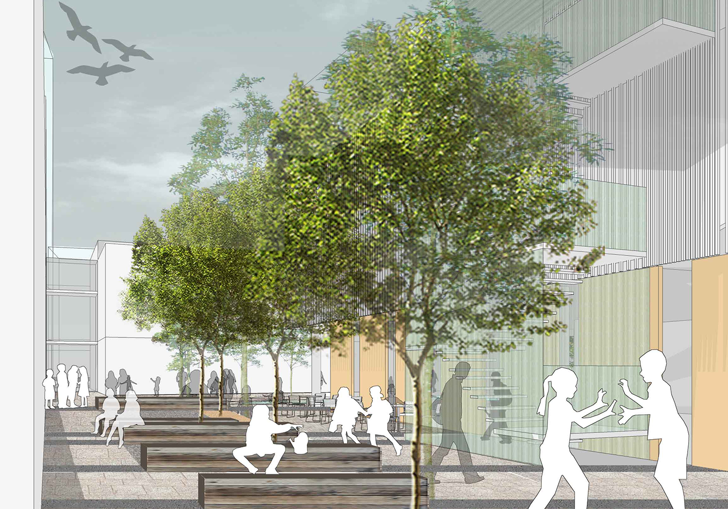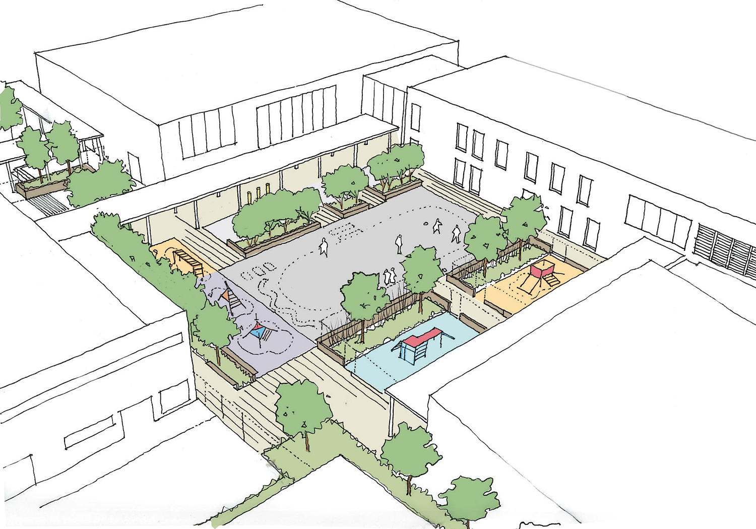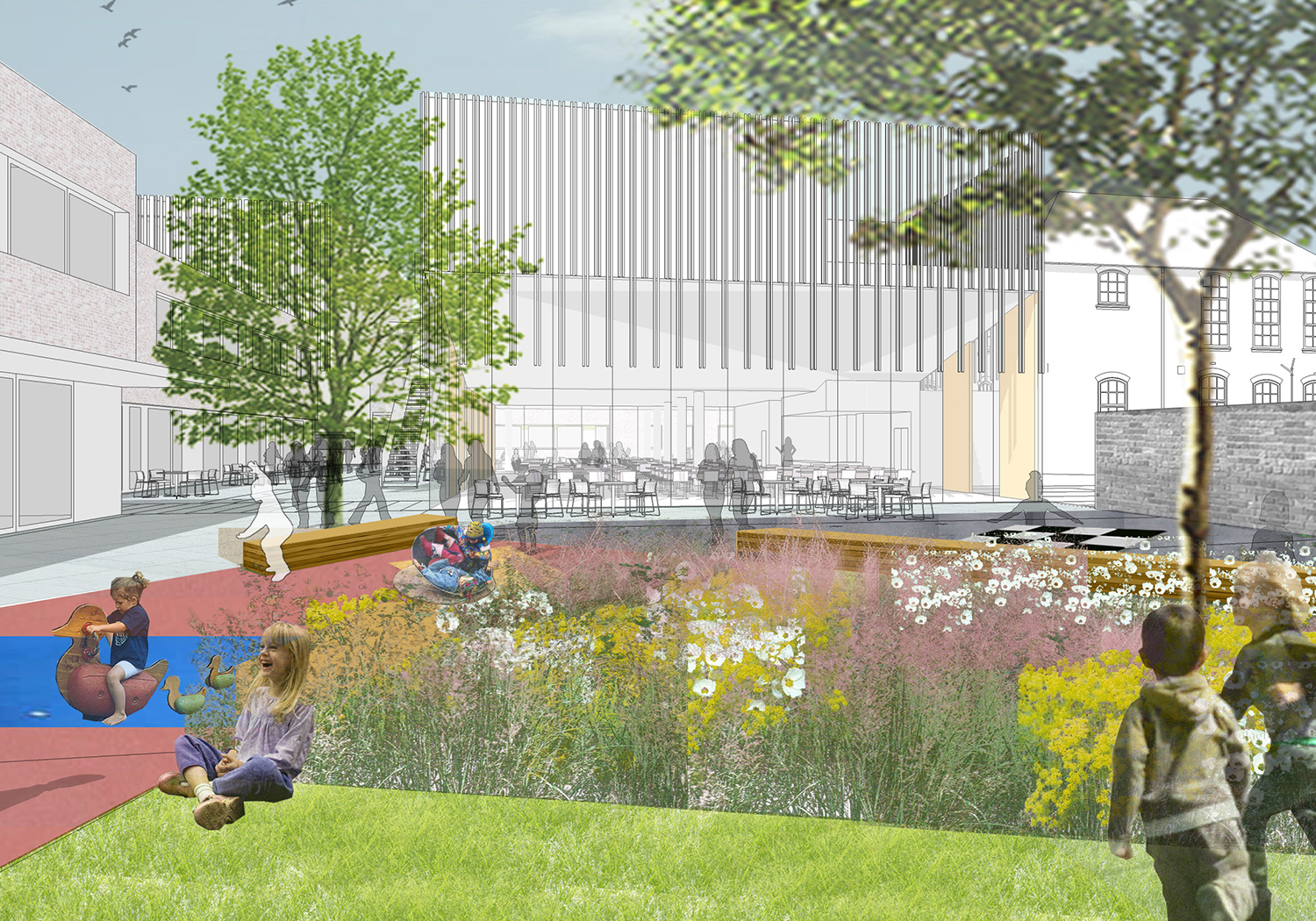 Subsequently, the practice was invited to join the Costain team in the preparation of a successful bid involving two large sample secondary schools. This included negotiation with planning officers prior to a detailed planning application. Five further schools were commissioned to detail design and a planning application for an innovative all-through school received a rating of Excellent from CABE for landscape and outdoor space.