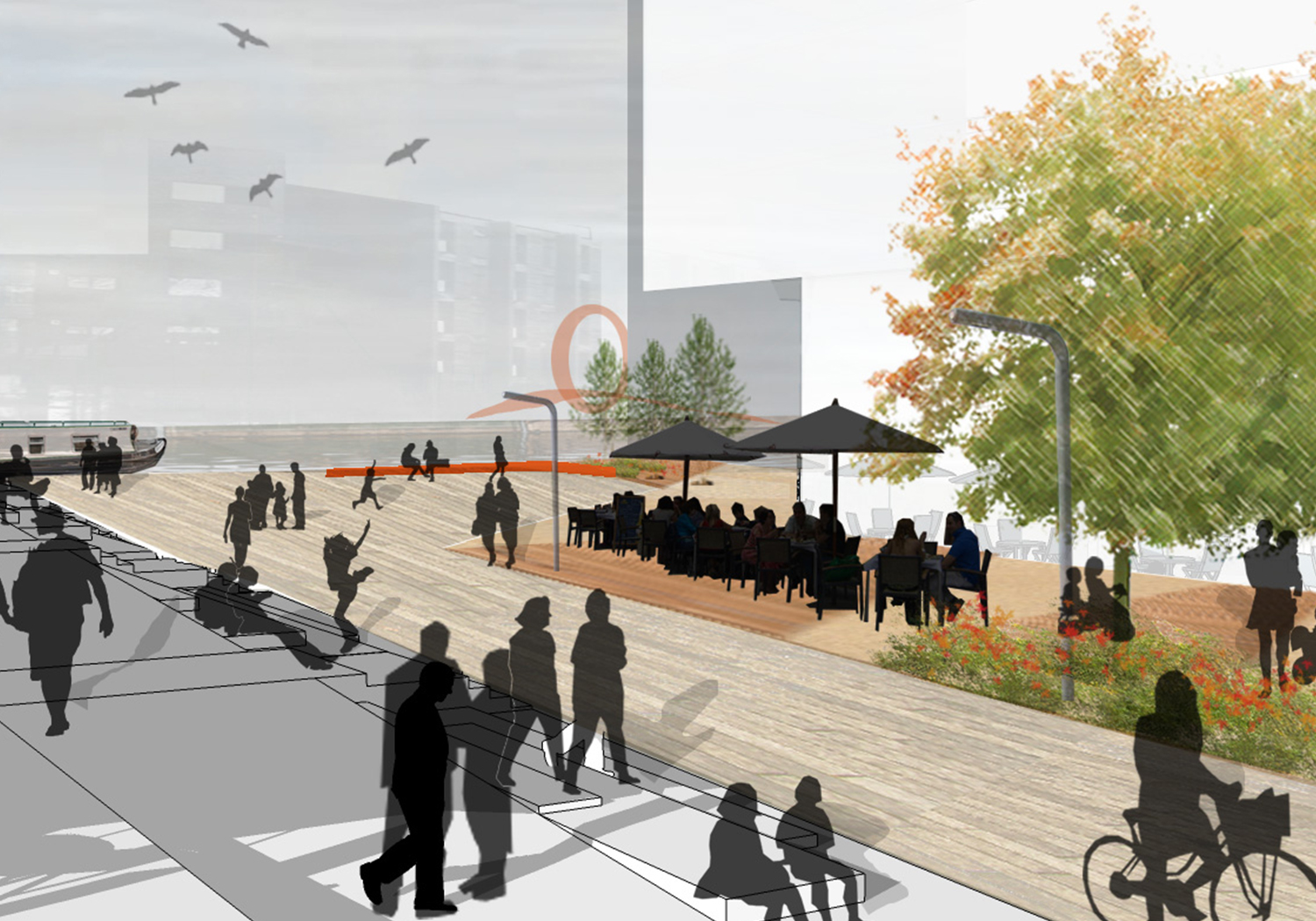 Major redevelopment of a former industrial area adjacent to the Hertford Union Canal, to include a dense, vibrant mix of artist studios, retail, and 850 unit residential development set within a series of yards, green spaces, play spaces, public spaces and urban squares. The Landscape Partnership prepared a Townscape and Visual Impact Assessment, which formed part of the Environmental Statement for the scheme and worked with architects to develop a masterplan for the site and detailed landscape proposals for the first phase of the development. Proposals included a play street, rooftop gardens, canal-side amenity space and a large public square. The designs reflected the industrial heritage of the site and local area and included proposals to work with local artists and businesses to develop street furniture for the site.