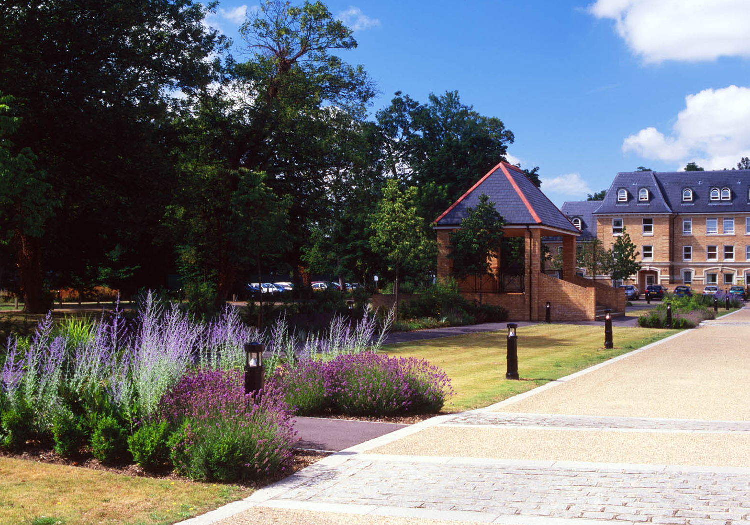 A successful planning appeal was followed by detailed design of hard and soft landscape works and inspection of works implemented on site. Designs proposals were prepared for amenity open space, communal garden areas, central driveway and parking areas, and setting of the Listed Buildings.