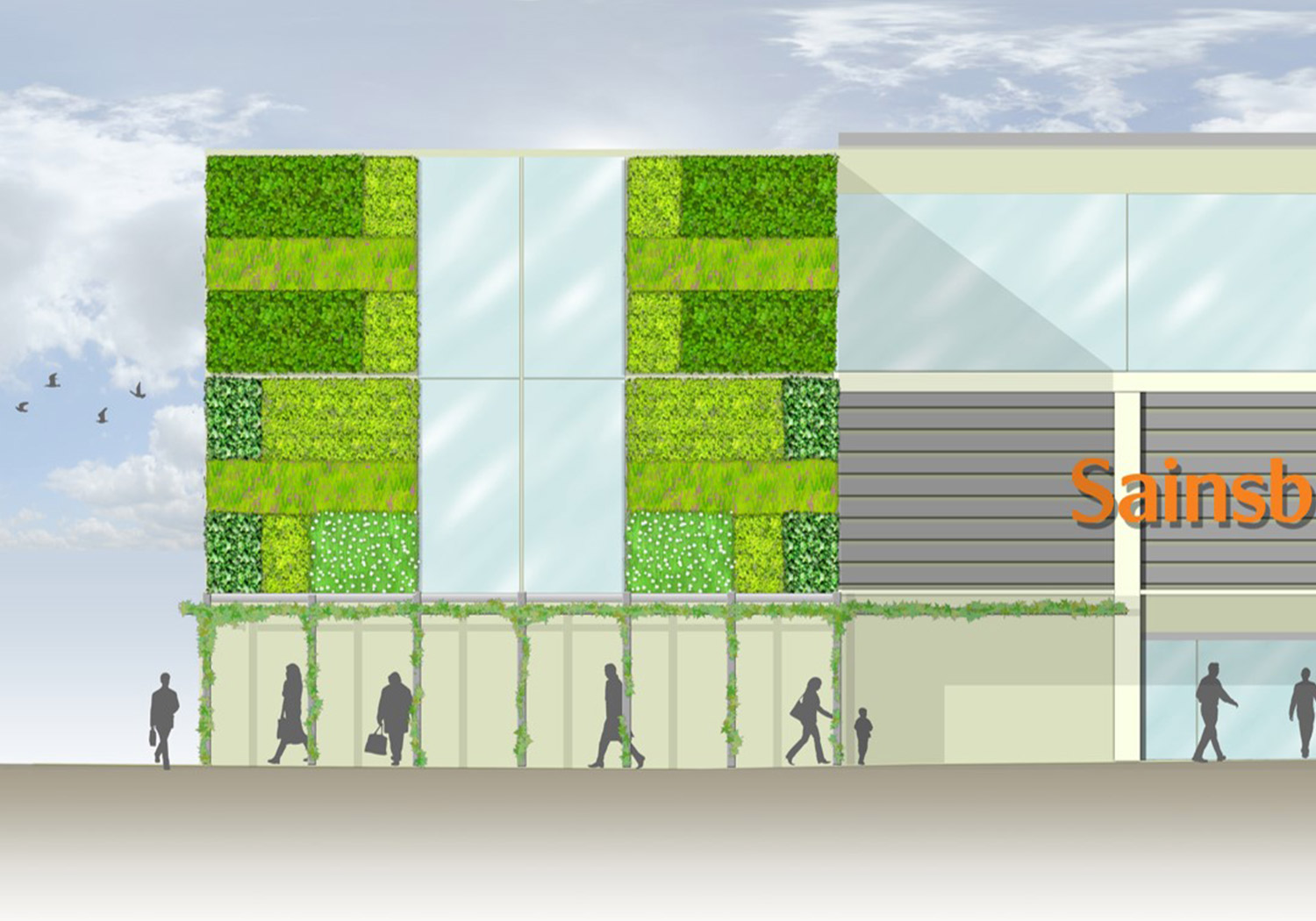Public realm proposals for a new build store on an existing Sainsbury’s site within the Welwyn Conservation Area, which helps conserve the original Garden City layout for the town centre envisaged by Ebenezer Howard and Louis de Soissons. The public realm within the vicinity of the store had become degraded and neglected with restricted access and poor legibility. The proposals extend the pedestrianisation of Wigmores South, improving access and providing an area of open space for markets and events. Detailing of metal pergolas, decorative screens and pleached hornbeam tree supports are based on the design of the original metalwork for the Garden City. A living wall is incorporated on the store elevations to provide a new vision for bringing the garden into the city.
