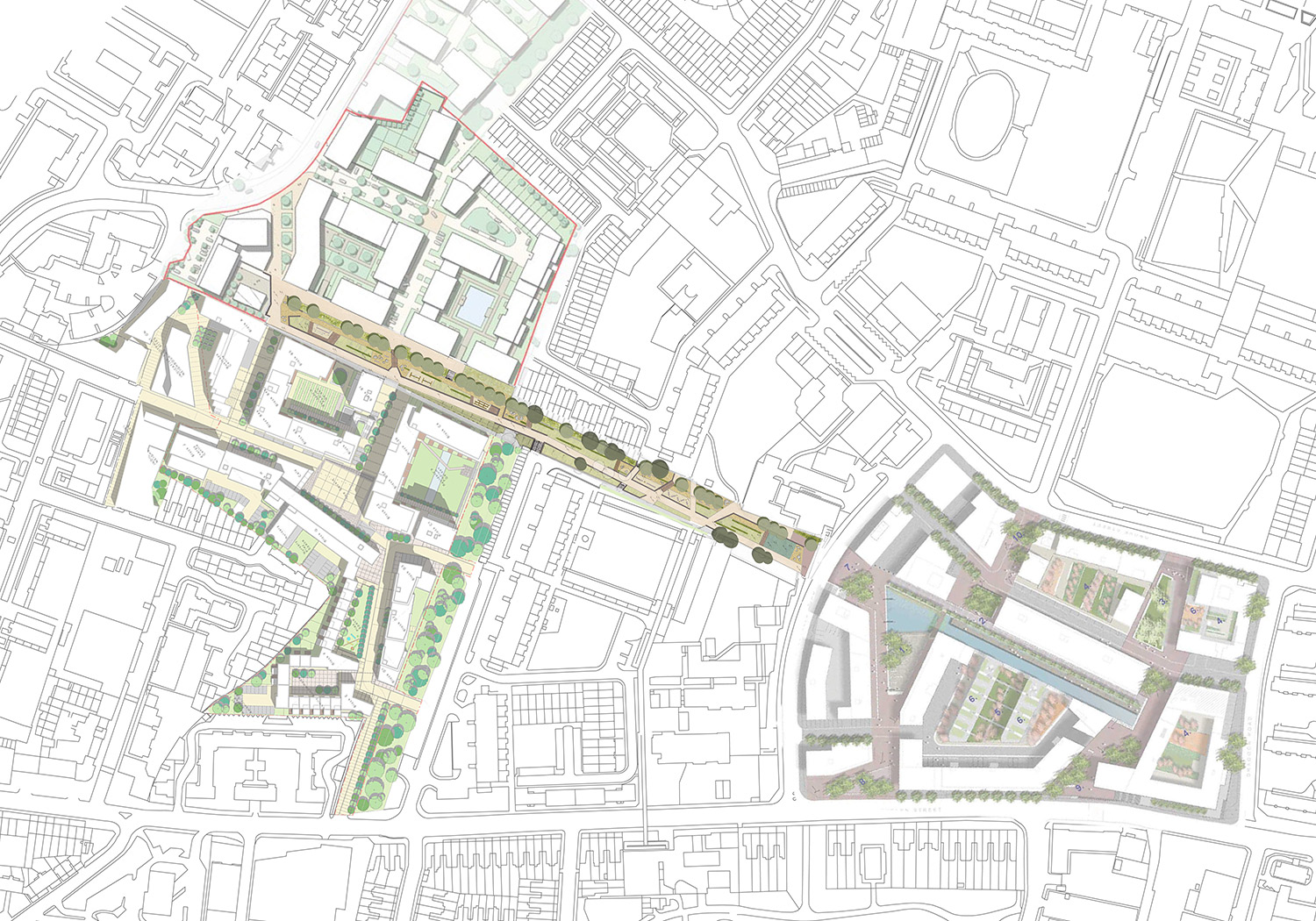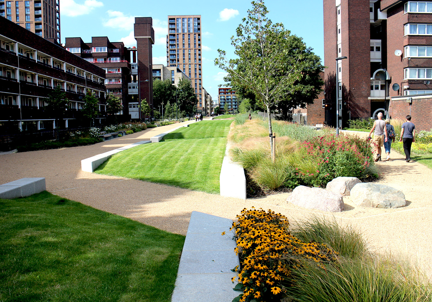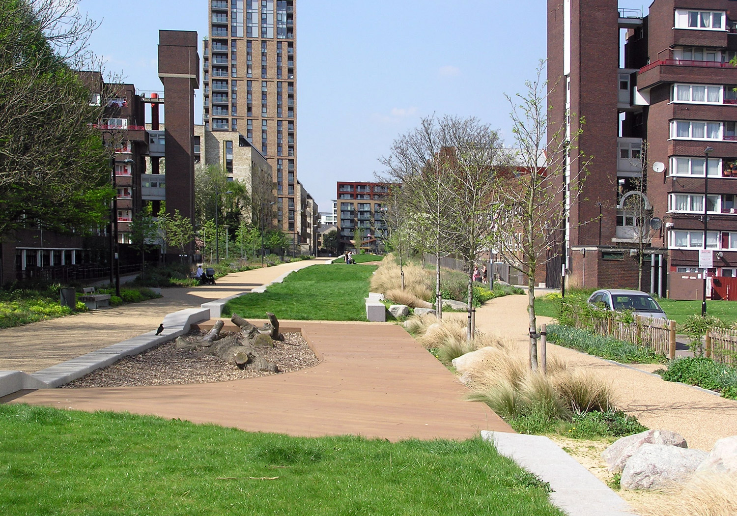 Early stage design study for a section of the former, historically significant, Grand Surrey Canal, which once extended between Greenland Dock and Blackhorse Road in south-east London. Our involvement included a design review of three large-scale mixed-use development proposals facing onto the former canal. The Landscape Partnership provided key liaison between the local planning authority and applicants, and provided landscape and urban design advice as to how these proposals could be integrated to form one unified design solution whilst taking into account wider strategic issues. A masterplan was developed for the former canal route and detailed design and contract administration for a section of the new linear park. The canal park provides a key strategic link in north Lewisham though three major developments.