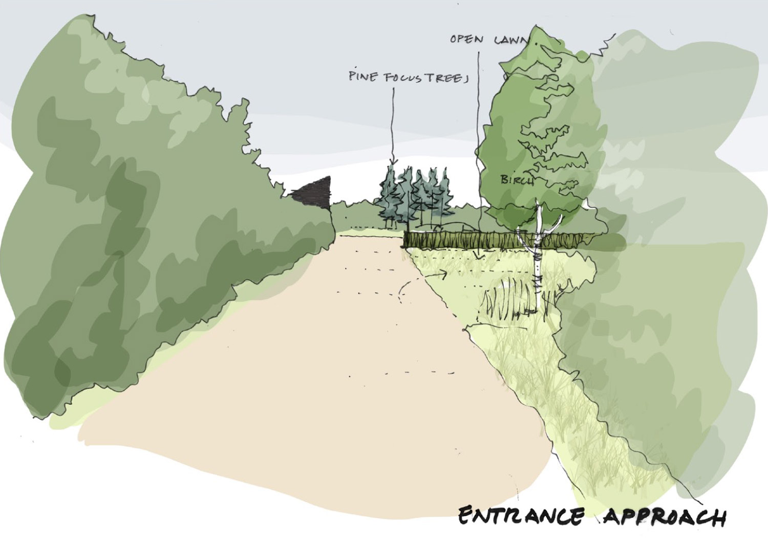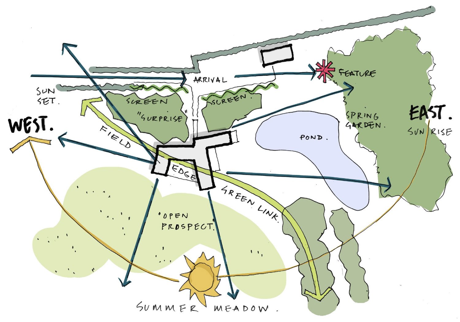Landscape design and ecological surveys and advice to accompany a planning application for a single-storey, low-energy weekend house in a 7.5ha rural site in the Suffolk Sandlings. Proposals included a large pond, boundary and tree planting associated with the new house, including extensive bulb planting, and a new ‘bat house’ to mitigate for the loss of existing bat habitat arising from the removal of the original building.